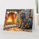 Black Cat Sitting Fireplace with Christmas Lights Card