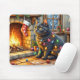 Black Cat Sitting Fireplace with Christmas Lights Mouse Pad