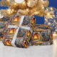Black Cat Sitting Fireplace with Christmas Lights Wrapping Paper