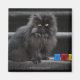Black cat sitting on stairs by building blocks. magnet
