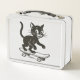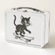 This metal lunchbox features a bold and playful illustration of a black cat skateboarding, combining cool skater energy with unmistakable feline attitude. The design blends effortlessly into a streetwear-inspired aesthetic, making this lunch pail feel modern, expressive, and full of personality. The black cat cruising on a skateboard brings together independence, confidence, and a touch of humor, creating an image that instantly stands out from ordinary lunchboxes. It’s a fun and stylish choice for anyone who wants their everyday essentials to reflect their interests, whether they’re heading into the classroom, the office, or out on the move.