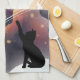 Black Cat Space Shooting Star Tea Towel