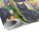Black Cat Spring Flowers Painting Wrapping Paper