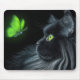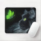 Black Cat Staring At a Glowing Green Butterfly Mouse Pad