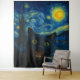 Black Cat Starry Night Van Gogh Cat Selfie Tapestry