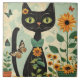 Black cat, sunflowers, butterflies, native art ceramic tile