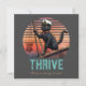 Black Cat Sunset: A Voyage to THRIVE Invitation card: A black cat wearing a captain's hat and standing on the bow of a ship, sailing into a vibrant retro sunset.