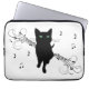 Black Cat Surrounded by Whispering Notes of Music Laptop Sleeve