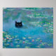 Black Cat Swimming in Water Lilies Decoupage Art Poster