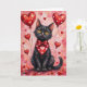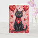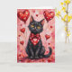 Black Cat Valentine Sitting with Hearts Red Card