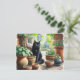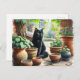 Black Cat Watching Catnip Grow Cute Postcard