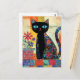 Black cat folk art, whimsical floral pattern, vibrant and decorative.