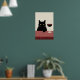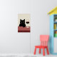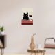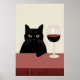 This illustration features a relaxed black cat sitting at the table beside a glass of red wine, capturing a cozy and introspective moment. The minimalist style and warm tones create a soft, modern aesthetic that feels both elegant and playful.