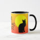 This is a bright and colourful Halloween seasonal mug, with a black cat silhouette in front of a yellow full moon. The image is placed on a bright orange background, with the text in black in the middle, "The Witching Hour". The cat and moon image is repeated twice on the mug. *Special thanks to Lorene Digital Diva for use of her artistic text in this image.*