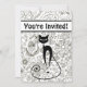 ~Personalised Cute Black Cat with a Charming Black and White Garden Background Birthday Party Invitation for girls.