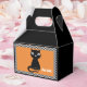 Black Cat with Curled Tail Halloween party favour box with black cat and black and white chequered border (see matching kitchen and dining and party items). Personalise it by adding a name and/or your own text, changing the images and background. If you don't want a Halloween favour box remove orange background and choose or eliminate the font and it's just a cute cat with black and white checks. See coordinating design items, which you can also personalise and customise.