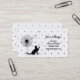Black cat silhouette with dandelion and seedlings on black polka dot pattern.