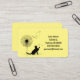Black cat silhouette with dandelion and seedlings on yellow background.