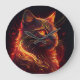 Black Cat With Fire Red & Golden Aura Glossy Large Clock