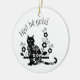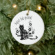 Black cat with flowers and Portuguese expression Ceramic Ornament