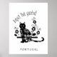 When Portuguese people say Aqui há gato! they are not saying that there's a cat around. This is a Portuguese expression used when a certain situation raises suspicions. It's like saying something is fishy. If you think something is suspicious or if you sense something not totally right you say Aqui há gato! This illustration of a cat and folk flowers in black and white has great contrast and is quite funny because it plays with the meaning of this expression. It will look funny in a house where there is, in fact, a cat, it being black or white or tabby. I would say that this illustration will especially appeal to cat lovers. It will make a good birthday present for a cat owner or for someone who has just adopted a cat. It's a good conversation starter for most people who aren't Portuguese natives, usually, most people find it funny. A little feline humor is always a good idea in our daily lives, almost as good as learning a second language!