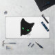 black cat with green eyes desk mat