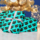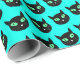Black cat with green eyes on turquoise blue Wrapping Paper