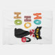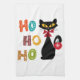 Colourful abstract Mid Century style illustration with black cat and Ho Ho Ho text design decoration on white background