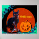BLACK CAT WITH PUMPKIN IN HALLOWEEN NIGHT POSTER