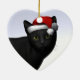 Black Cat With Santa Claus Hat Ceramic Ornament