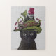 Black Cat with Teapot and Owl Jigsaw Puzzle