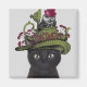 Black Cat with Teapot and Owl by FabFunky. Features a black cat with a teapot and owl atop its head. | 191545D