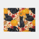 Hand-painted pattern with black cats ,pumpkins and autumn leaves. Mix-media- digital and watercolor painting.