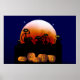 Black Cats, Moon, Pumpkins Poster