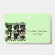 This name or identification badge is light green with three black cats with green eyes playing music with their instruments including a fiddle, guitar, and saxophone while standing on a sheet of black musical notes. Customise your name and information with the templates.