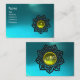 BLACK CELTIC FLOWER YELLOW GEM MONOGRAM Aqua Blue Business Card