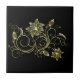 Black Ceramic Tile with Gold Flowers Choose Colour