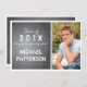 A play on the classic black chalkboard this design announces the graduation of your son in bold lettering. A fun and unique alternative! Shown here as a party invitation, all text on the back can be customised to change to an announcement only.