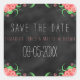 © Sunny Mars Designs - Floral Hibiscus: Pink on Chalkboard Square Wedding Save The Date Stickers - Elegant, classy, trendy, stylish custom printed black chalkboard wedding save the date square stickers with a beautiful, gorgeous, pretty pink swirly floral tropical hibiscus design against a black chalk board background.