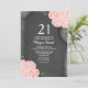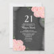 Black Chalkboard Pink Rose 21st Birthday Invite