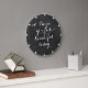 A black chalkboard round clock with asterisk markers for numbers and a beautiful love or inspirational happy saying. This clock is a perfect gift for anyone. Use the quote that's on the clock or create your own as the clock's saying is fully customisable.