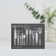 A card with Black Chalkboard, placed on white surface with personalised background retro recipe on front postcard. It is customised with your initial and name.