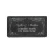 Hand-drawn grapevine leaves and clusters frame the couple's names in elegant script on this vintage black chalkboard wedding return address label. The wine label-inspired design brings rustic vineyard charm to your wedding mailings. The names and address are easy to personalise.