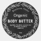 A white wreath on a black chalkboard image, chalk like text for best effect. Use these product labels on body butter, soap, bath bombs and soaks, and other homemade spa, bath and body products.