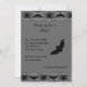 Spooky spiders and bats decorate the lace on this invitation, giving it an eerie feel. The back is further decorated with bats in flight around a chandelier. This is perfect for the grown up party. The coordinating envelope is also available.