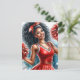This postcard features watercolor artwork of a beautiful brown-skinned cheerleader in red cheer uniform with pompoms and a big, pretty smile!