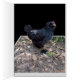 Chicken, Pictured is a black fluffy chicken in a three dimensional pop out picture.