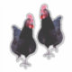 Pictured are two curious black chickens