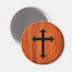This Elegant Classic Christian Magnet features a Black Cross design on a brown wooded texture pattern background.