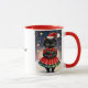 Add a dash of charm to your holiday decor with our ai generated Festive Black Christmas Cat Mug, adorned with a quirky cat in a cute red and green skirt.